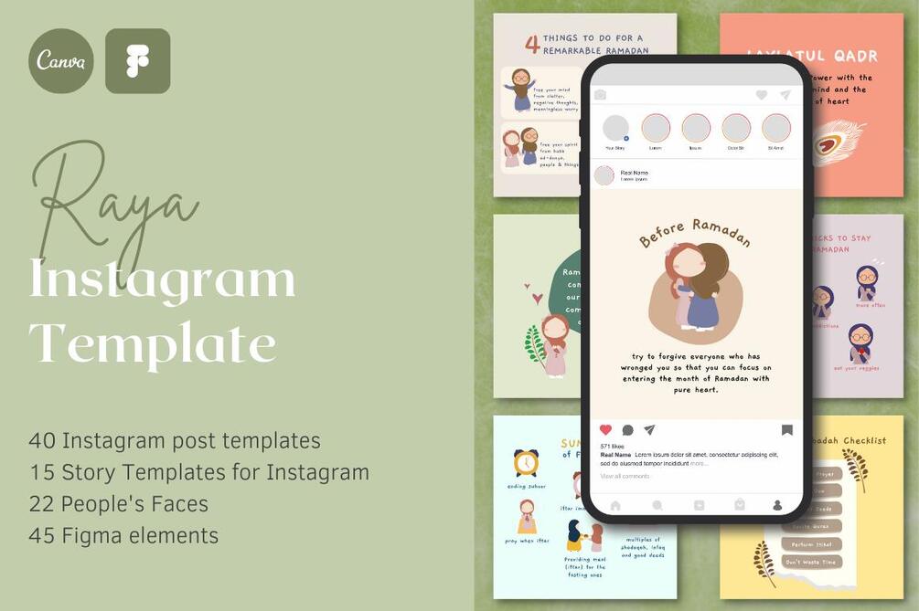40 Post Templates (10 islamic infographic, 30 daily islamic quotes) & 12 Instagram stories. 22 People's Faces and 45 figma elements.